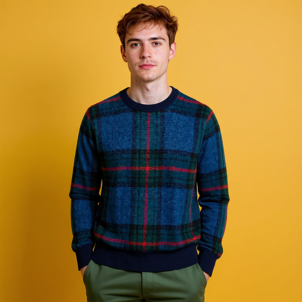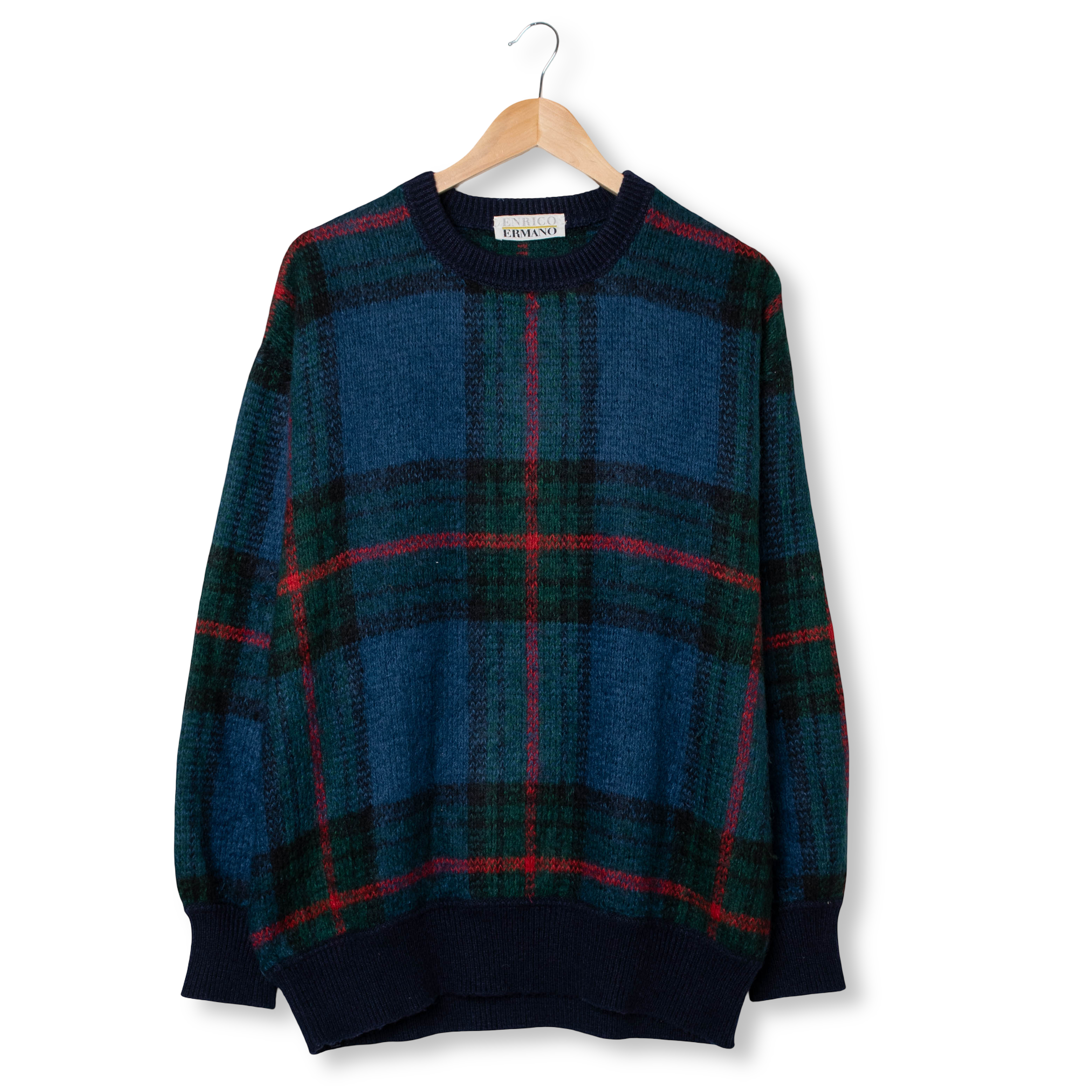 Vintage 80s 90s navy and green plaid pattern 60% mohair Sweater - Size XL